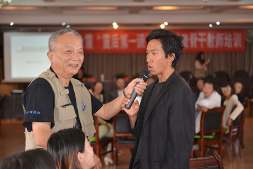 培訓中,中國心理學會心理危機干預工作委員會委員、心理所災害心理援助與創傷研究青年創新團隊成員陶勑恒教授、心理所撫順災后心理援助工作站志愿者白云閣和心理所北川災后心理援助工作站志愿者于洋開展了心理危機干預的理論授課、體驗式教學、“震后第一課”課程設計和現場示范等培訓。陶勑恒教授首先提出了“震后第一課”與“震后第一堂課”的區別,指出“震后第一課”是指震后學生、教師度過應急期過程中的心理工作,“震后第一堂課”是指震后學生所上的第一堂心理課,是“震后第一課”的重要組成部分。隨后,在白云閣和于洋的協助下,陶勑恒通過“大風吹”、“映山紅開”等熱身活動示范了如何面向災區學生開展團隊建設活動,講授了學校心理危機干預理論和實踐,開展了以“壓力管理”為主題的團體輔導示范課,并通過對培訓主題的確定、培訓時間的把控、熱身活動的開展、進入主題環節的方式、參與者分享的開展、進行主題升華等具體心理健康課程流程的示范和講解,輔之以小組討論的形式進行了現場課程設計和實施,提升了參訓教師運用理論和進行遷移的能力。
