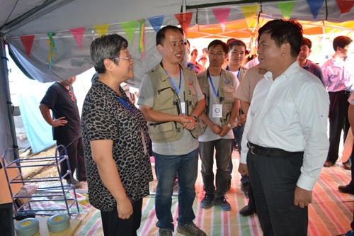 9月1日下午5時,云南省省長李紀恒一行到昭通市魯甸縣龍頭山鎮灰街子安置點視察震后重建工作期間,到心理所魯甸心理援助工作站親切慰問了工作人員,并參觀了工作站設立的“兒童天地”。