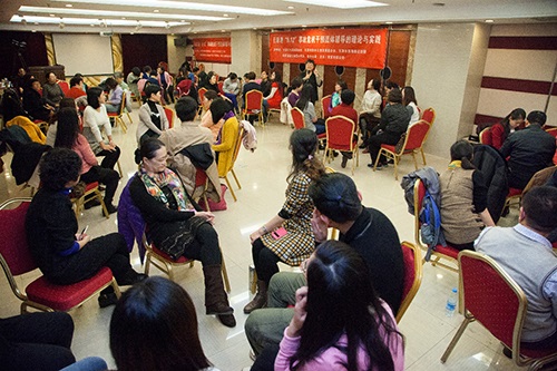 樊富珉教授運用生動有趣的現場互動,豐富的個案實例,加上極富感染力的表達,帶領志愿者逐步領略團體輔導的魅力與精髓,通過團隊建設、探尋壓力源、腦力激蕩、尋找資源、圖說災難、互助分享等方式,讓大家在體驗和感悟中習得心理團體輔導的技能,從內心感受到團隊的能量所在。參加培訓的一位心理咨詢師說到,“在8·12爆炸事故后,我一直在不停地工作,沒有時間和機會去沉淀情緒,今天有這樣一個機會和溫暖的氛圍,使我的壓力和情緒得以釋放,我感到很輕松,同時也能夠輕裝上陣更好地去幫助別人,做一個內心強大的助人者。”