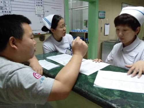 李曉景在護士站評估受傷群眾的心理創傷情況