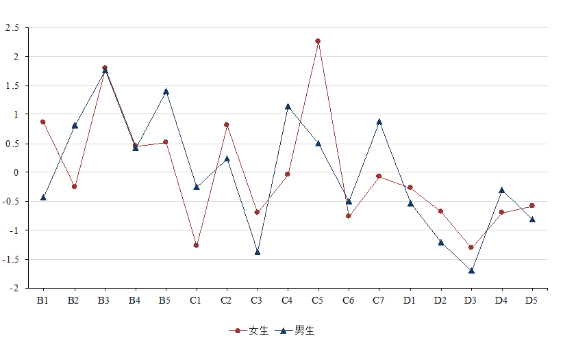 圖2: 女生及男生癥狀核心度的標準化估計值