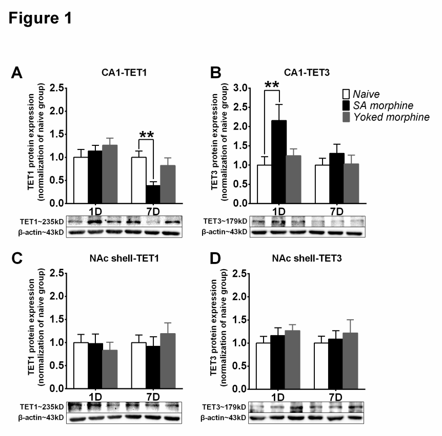 圖1 嗎啡自給藥的獲得改變海馬CA1中TET1和TET3的表達