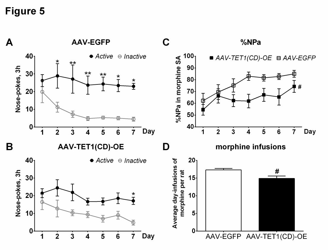 以上研究結果提示海馬CA1中的TET1和TET3在嗎啡自給藥行為獲得中發揮重要且不同的調控作用,為抑制阿片類藥物成癮的形成提供了潛在靶點。