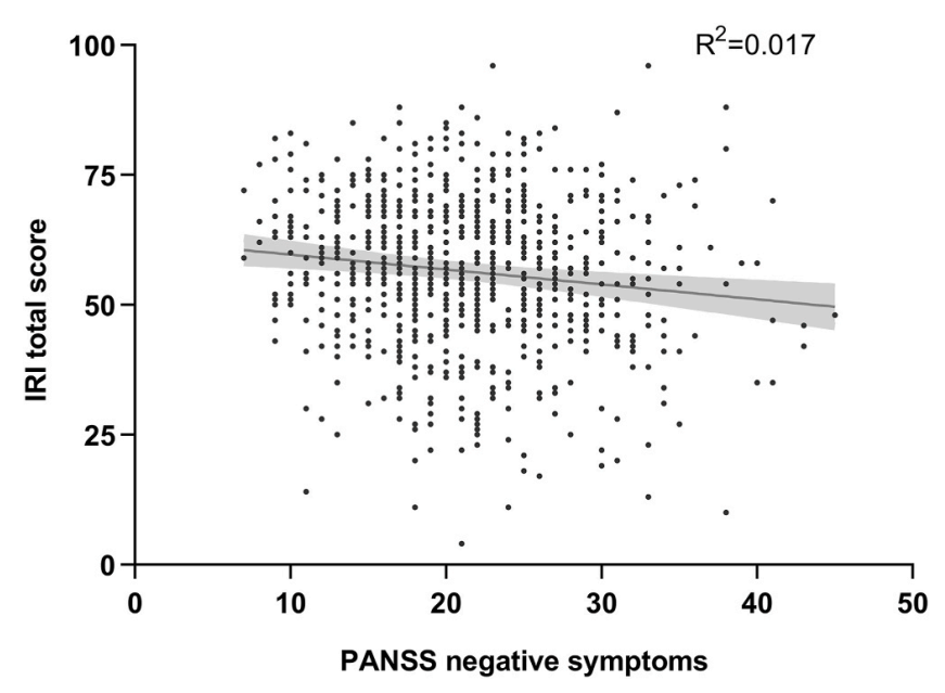 圖1. 精神分裂癥患者陰性癥狀與IRI總分呈顯著負相關