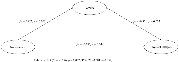 圖1. MDD不同因子影響軀體健康相關生活質量的中介路徑