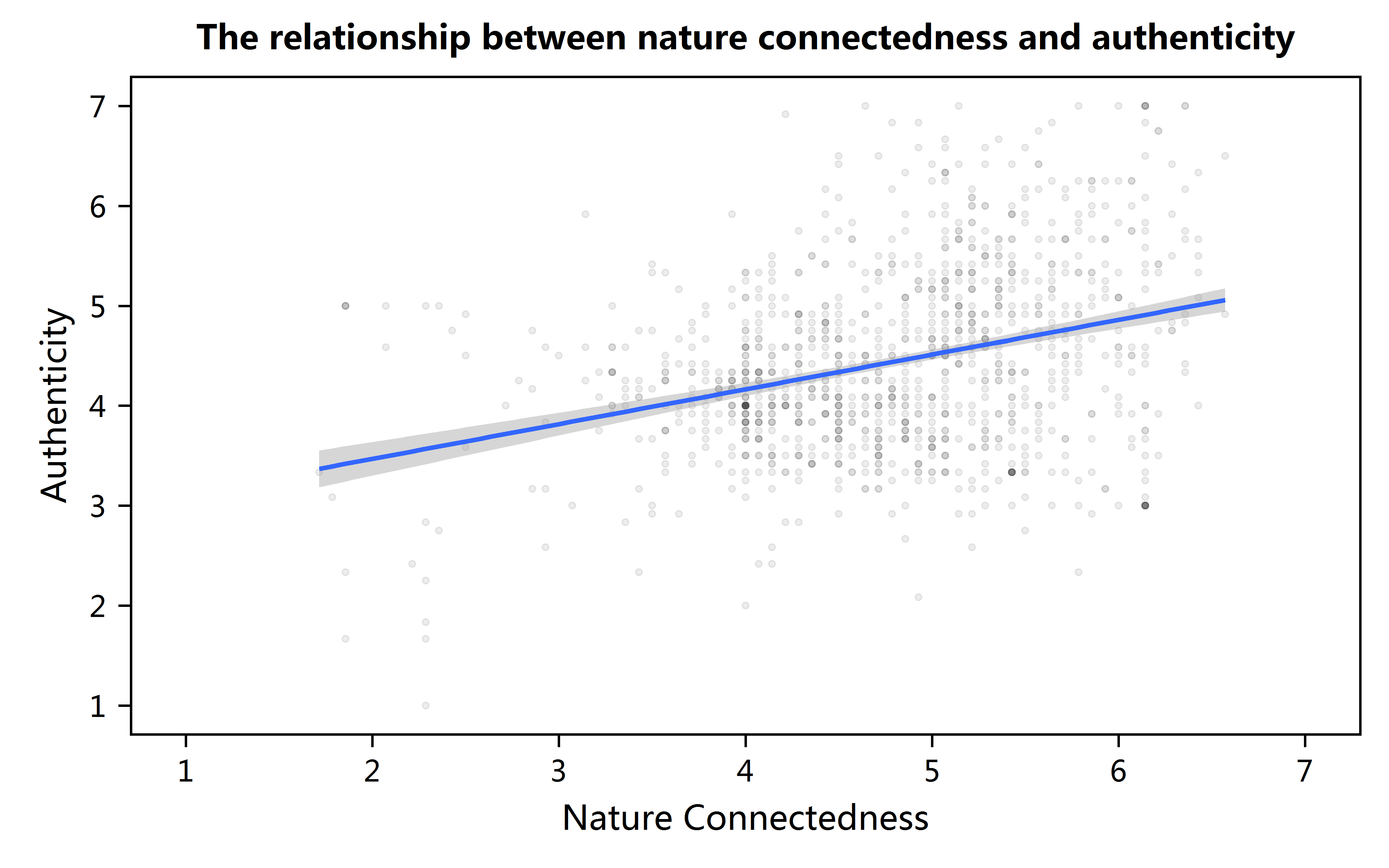 圖1. 自然聯結感和本真性之間的相關關系圖(研究1)