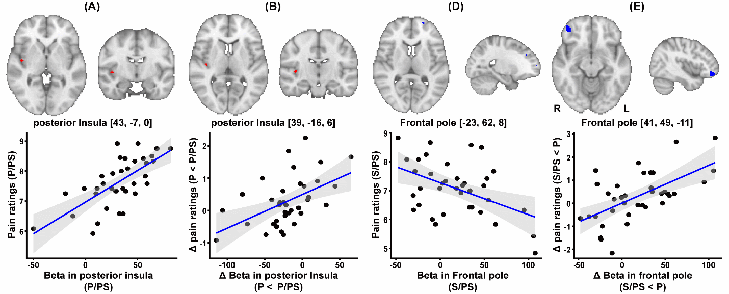 研究者招募了近期有被動分手經歷的大學生被試,通過被試提供的前任照片誘發社會疼痛,結合熱刺激誘發軀體疼痛(圖1A),通過一系列行為實驗,考察當個體同時感知社會疼痛和軀體疼痛時,社會疼痛如何調節個體對軀體疼痛的感知。研究首次揭示了社會痛苦對軀體疼痛的矛盾影響,即調節對社會疼痛的關注時,社會疼痛對軀體疼痛既有抑制作用,又有促進作用。
