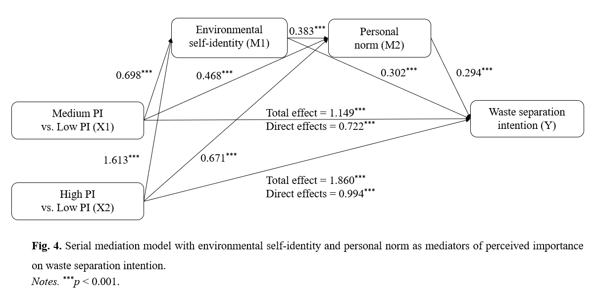 圖3. 環境自我認同和個人規范的鏈式中介模型