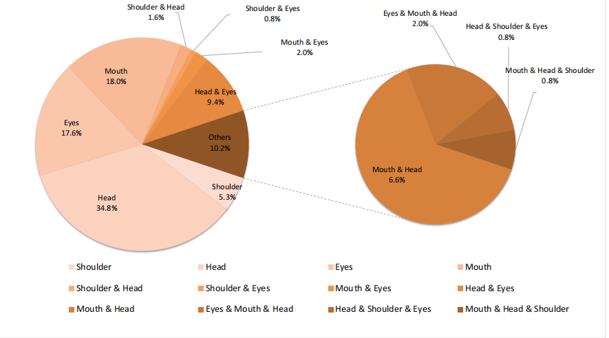 圖1. 交互姿勢所用身體部位及組合之比例分布