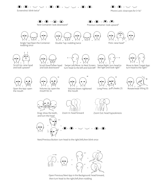 為探索利用先進的輔助技術結合障礙者的自身潛能,提高主流移動設備的人機交互界面賦予上半身運動障礙者的更多可能性,中國科學院心理研究所微表情應用研究中心開展了針對肌張力障礙群體的一項用戶研究。實驗采用用戶參與式方法中由Wobbrock提出的最大化猜想設計方法,邀請了16名不同程度的肌張力障礙者,為從智能手機上選取常用的26個命令,設計基于面部肌肉運動的頭部姿勢交互技術,收集了416個用戶定義的涉及面部特征和肩部的頭部手勢,獲得了適用于肌張力障礙患者的首選手勢集。結果發現,屬于運動障礙之一的肌張力障礙者,基于自身的運動條件及認知特點,交互姿勢的選擇有其特定偏好。實驗中定性分析獲得的對姿勢設計的用戶見解,為智能環境下移動終端自然交互技術的通用設計提供了有益的參考。