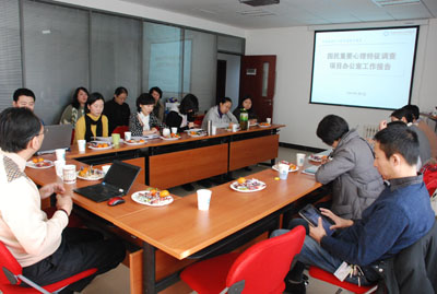 陳雪峰首先回顧了數據庫項目辦公室的工作進展狀況,就項目辦公室的辦公場所和人員配備,在信息平臺管理、財務管理、科技檔案和知識產權管理及行政事務等方面的運行管理機制進行了詳盡的介紹。基本認知指標組陳天勇從基本認知指標的確定、測量工具的選取、取樣與施測過程及結果分析等方面匯報了進展情況。心理健康指標組郭菲代表陳祉妍課題組重點匯報了《中國心理健康量表》(CMHI)在三類代表人群中的取樣的結果分析及量表簡版開發的進展情況。