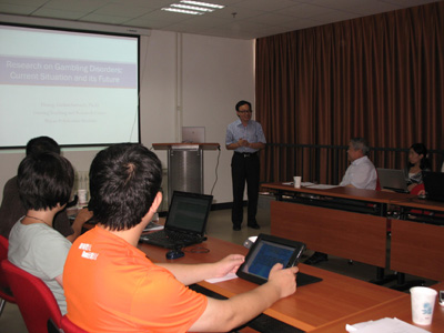 黃貴海博士在此次沙龍中詳細地介紹了賭博失調的研究現狀:在過去三十多年來,賭場博彩、體育博彩、彩票等不同形式的合法賭博在世界各地蔓延,1980年DSM-III首次收錄強迫性賭博的診斷標準,這都激發了學者對賭博失調的研究興趣。目前賭博失調已經是行為成癮中研究最多的,但學者對賭博失調的概念、成因、治療以及其流行病學仍未達共識,比如DSM-V對病態賭博歸屬、診斷標準、名稱的修訂引起廣泛爭議。與此同時,黃貴海博士希望在探討賭博失調的原因,以及如何來預防賭博失調,治療賭博失調這三個方面與心理所的科研人員展開更加深入的合作。到場的科研人員與黃貴海博士積極交流:成癮課題方面的研究人員表示可以將藥物成癮與賭博失調研究相結合,并可以在被試的取樣上共享資源;腦成像和基因方面的研究人員希望共同利用樣本來探討賭博失調的生理機制進而可以篩查、甄別、預防和治療賭博失調的人員。