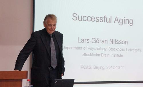 Nilsson教授11日下午面向全所師生和部分兄弟單位同行,作了題為“Successful Aging”的講座,介紹了關于成功老年化的研究成果。報告成果主要基于他所主持的Betula項目,這項關于老年化、記憶和癡呆的研究,其調研規模(涉及4500名居民、每人要采集2000多項生理、生化、社會和行為指標)、設計(嚴格的6個樣本群組隊列設計)與投入(已經耗資約一億瑞典克朗)在全世界獨一無二,已經持續了近30年,并發表了192篇研究論文(篇均影響因子3.4),在國際學術界產生了重大影響。講座由張侃研究員主持,心理所所長傅小蘭研究員等十余位科研人員和近百位所內外研究生參加講座。