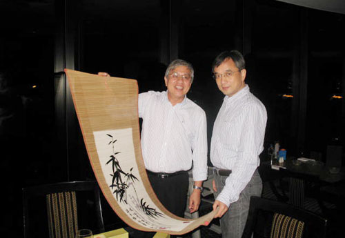 張建新研究員向格里菲斯大學國際合作辦公室中國區主任Thomas Toh教授贈送禮物