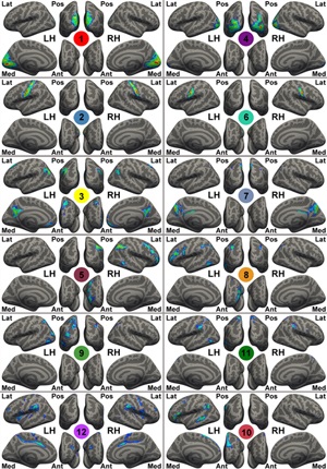 圖1. gRAICAR算法發掘構建的12個人腦功能網絡