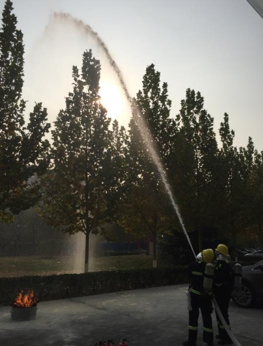 隨后,資產處組織物業人員進行了消防器材演練,介紹所內配備消防器材的使用并連接消火栓對草坪進行噴淋演示,到場人員也手持各種滅火器進行滅火演練實踐。器材演練結束后,物業項目部經理對物業人員進行了消防安全知識培訓。