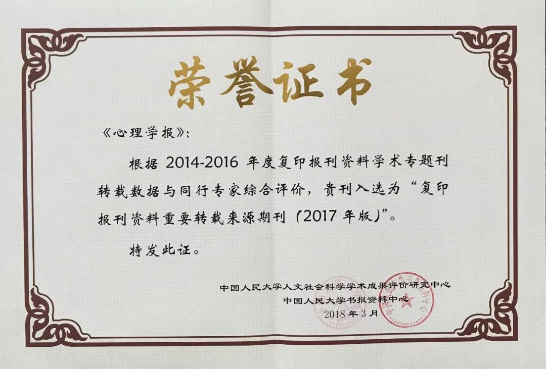 《心理學報》和《心理科學進展》被人大報刊資料轉載指數在心理學學科中名列前茅