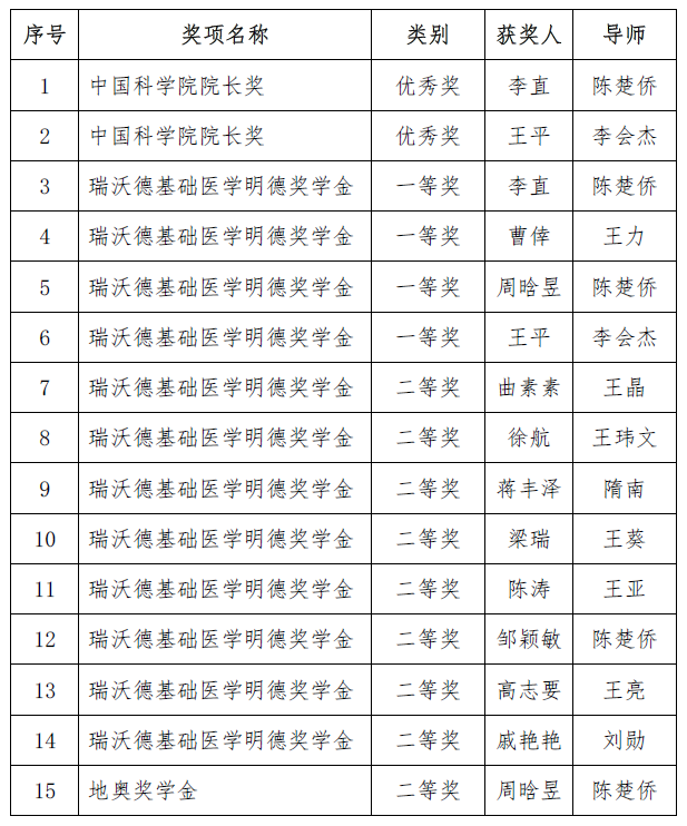 近日,中國科學院大學公布了2018年度各類院級獎項獲獎人員名單,中國科學院心理研究所多位研究生獲院級各項榮譽,現公布如下: