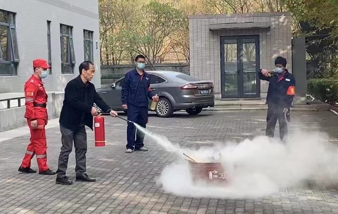 在下午的活動中,綜合辦組織科住物業項目部在心理所南樓南側廣場對后勤人員開展消防知識和能力培訓,內容包括:講解消防安全知識以及滅火器、消火栓的使用方法;消火栓出水操作演習及滅火實操;火警跑點演習。所內多名師生也現場觀摩并親身體驗了滅火器的操作。
