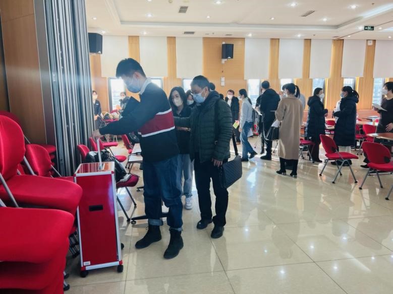 隨后,人事處張健介紹了考核測評程序和說明,與會人員現場填寫測評表并投入投票箱。