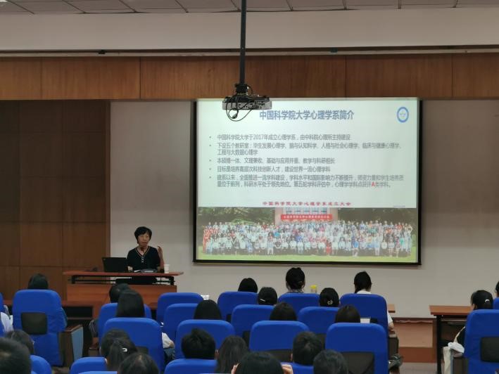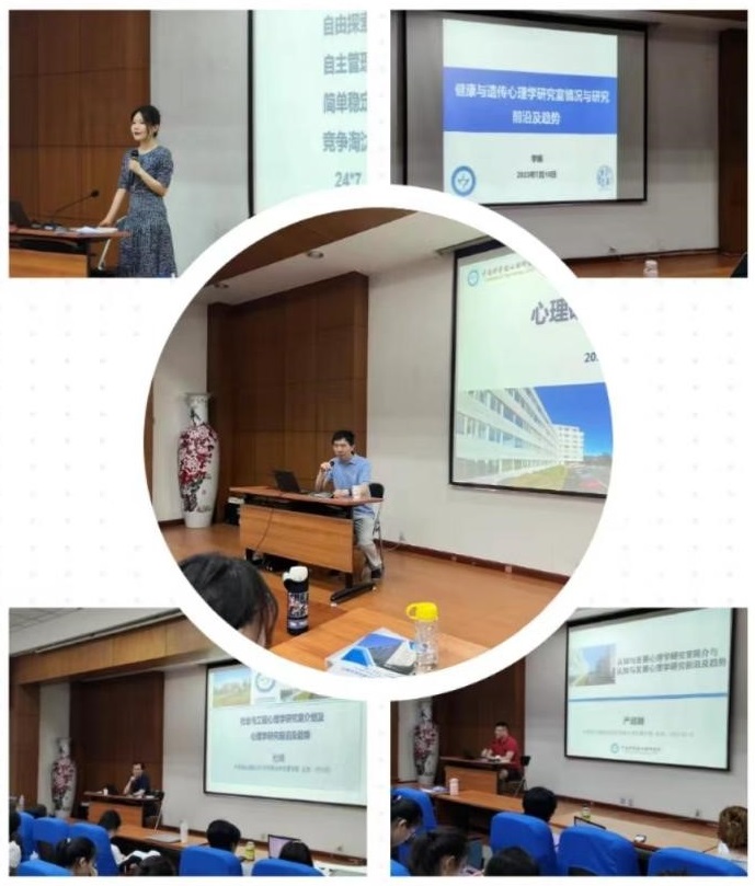 隨后,蔣毅研究員作報告,介紹了心理所科研布局;教師代表杜憶研究員以“如何度過研究生階段生活”為主題進行了報告。李娟研究員、杜峰研究員和嚴超贛研究員分別介紹了健康與遺傳心理研究室、社會與工程心理研究室和認知與發展心理研究室的基本情況、研究前沿及趨勢。
