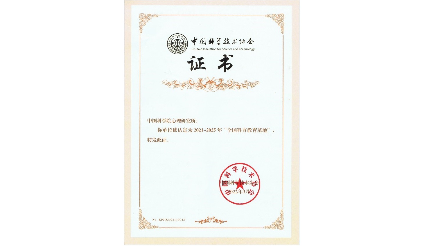 心理所分會榮獲中科院老科協2021年度“學術沙龍工作優秀獎”