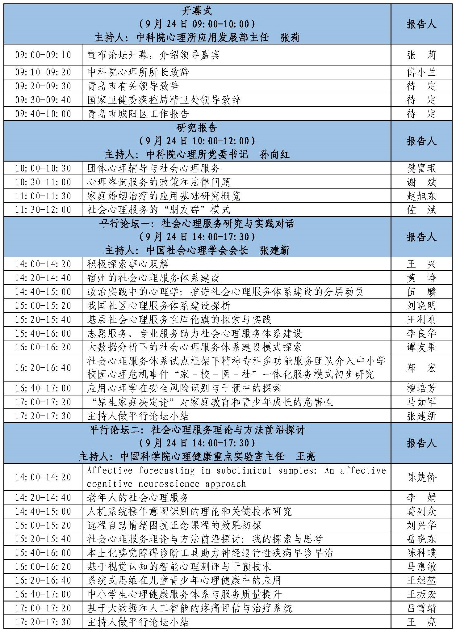 為貫徹落實黨的十九屆四中全會提出的“健全社會心理服務體系和危機干預機制”的要求,落實國家衛健委、中央政法委等10部委聯合發布的《關于印發全國社會心理服務體系建設試點工作方案的通知》文件精神和健康中國行動推進委員會印發的《健康中國行動(2019-2030年)》,推進“健康中國”和“平安中國”建設,在第一屆和第二屆中國社會心理服務高峰論壇的基礎上,中國科學院心理研究所聯合中共青島市城陽區委、青島市城陽區人民政府,于2021年9月24日舉辦“第三屆中國社會心理服務高峰論壇”,繼續推動心理學及相關學科開展針對性研究和科技服務,為構建新時代中國特色社會心理服務體系貢獻專業力量。我們熱忱邀請關心社會心理服務事業的領導、專家及社會各界人士參會!