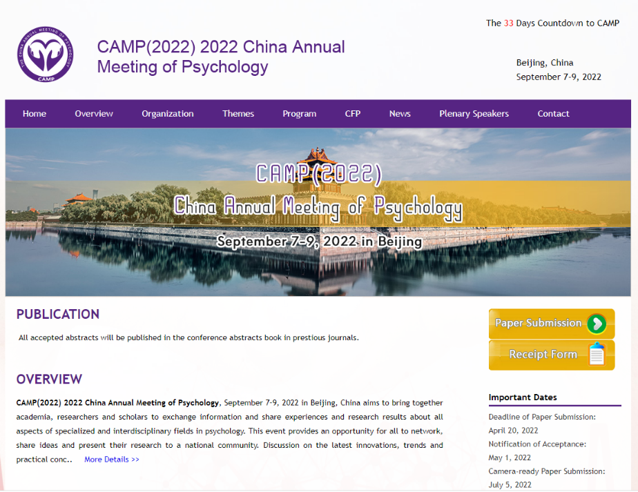 近日,有網站盜用中國科學院心理研究所的名義,聲稱心理所將于9月7日至9日主辦“CAMP(2022) 2022 China Annual Meeting of Psychology”(http://www.camp.ac.cn/)。
