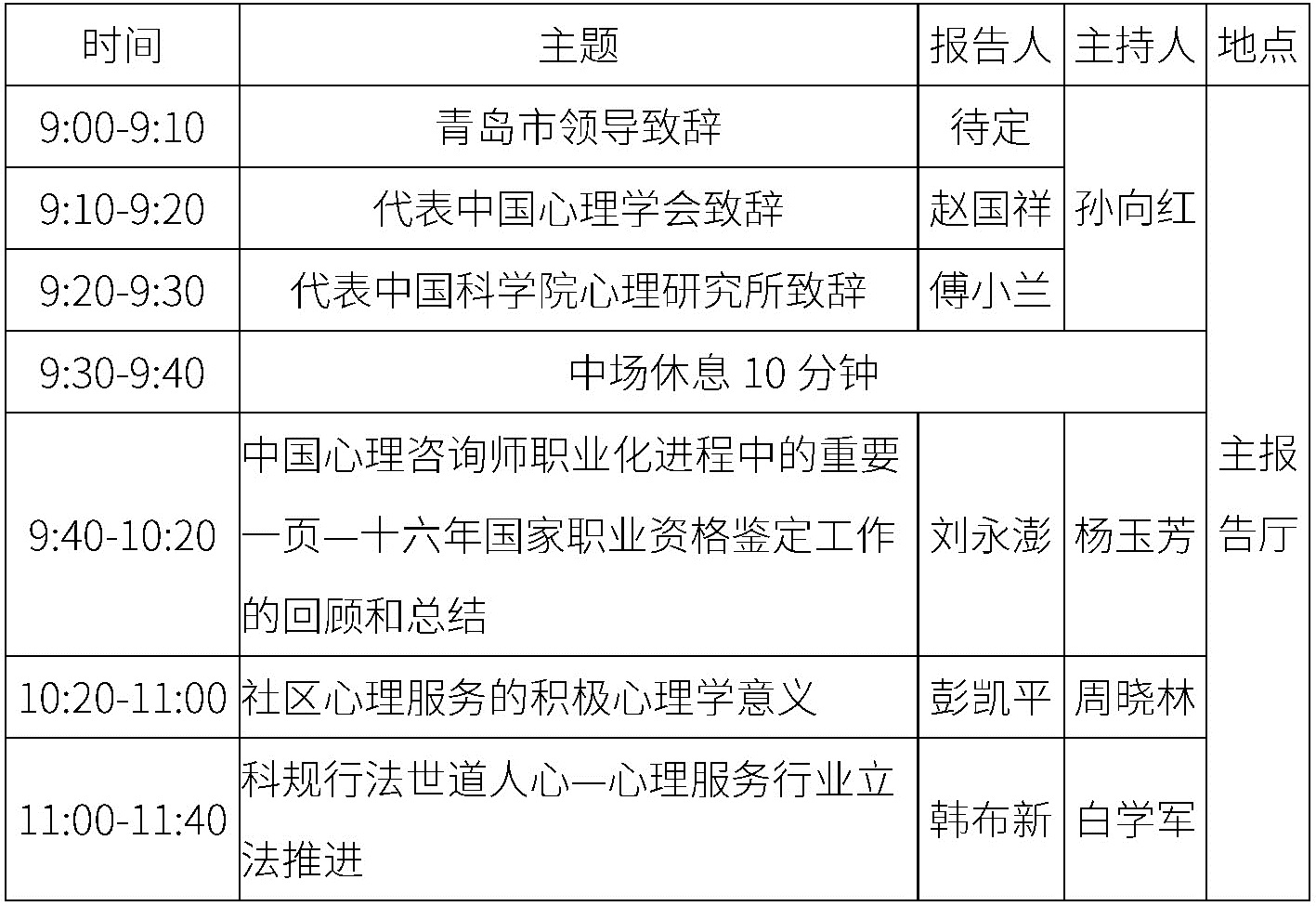20:00-22:00召開中國心理學會心理咨詢師工作委員會工作會議。
