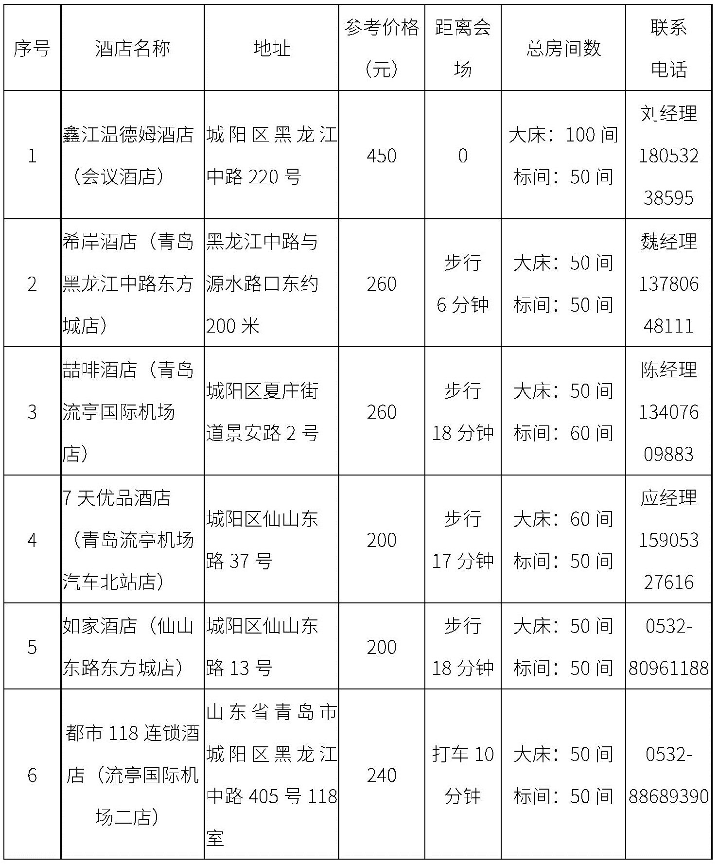 說明:“√”為建議到站,“×”為不建議到站。(三)大會推薦酒店信息因參會人員較多,請自行聯系酒店提前預訂。合作酒店的參考價格在旅游旺季有所浮動,請以酒店價格為準。大會推薦合作酒店信息具體內容見附件。