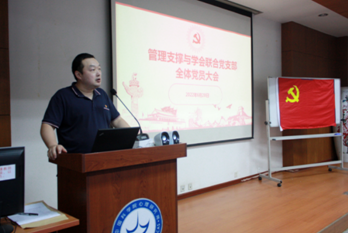 管理支撐與學會聯合黨支部黨員大會現場,6月28日