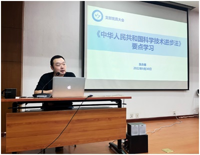 張永博首先領學了《科技進步法》。他首先介紹了《科技進步法》的發展歷程和本版修訂要點,強調了科技創新的核心地位。隨后,他從重視人才、激發科研人員創新活力、國家安全、科技資源配置和完善監督機制等方面對《科技進步法》的相關內容進行了解讀和說明,期間還結合研究所實際和《關于開展減輕青年科研人員負擔專項行動的通知》要求對管理支撐黨員提出了工作方向和建議。最后,他重申了院里的工作要求,請大家自覺將《科技進步法》相關精神、要求和內容運用到科技管理服務活動中,并對已有規章制度進行研究和修訂。