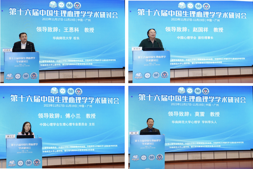 2023年11月17日至11月19日,由中國心理學會生理心理專業委員會、中國科學院心理健康重點實驗室、華南師范大學腦科學與康復醫學研究院、華南師范大學心理學院、腦認知與教育科學教育部重點實驗室聯合舉辦的第十六屆中國生理心理學學術研討會在華南師范大學廣州校區石牌校園拉開帷幕。大會以 “心理健康與心理疾患的腦科學研究前沿”為主題,吸引了來自全國90余所大學和研究機構的400余名專家學者及師生代表的熱情參與。