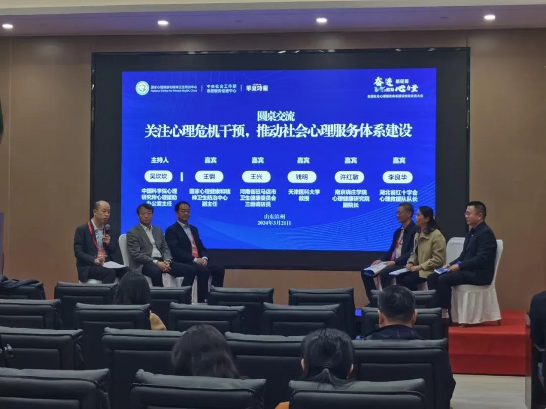 3月20日至3月22日,由國家心理健康和精神衛生防治中心、中央社會工作部志愿服務促進中心、華夏時報社和中國心理學會等聯合主辦的“首屆全國社會心理服務體系建設經驗交流大會”在山東省濱州市舉行,此次大會以“奮進新征程 激發心力量”為主題。其中,3月21日下午,由中國心理學會心理危機干預工作委員會、中國社會工作聯合會社會心理服務工作委員會和貴州省第二人民醫院聯合承辦了“心理危機干預與社會心理服務體系建設”分會場,匯聚了來自全國各地的心理學、社會工作、醫療衛生等領域的專家學者80余人,共同探討心理危機干預的有效途徑和構建社會心理服務體系的創新策略。分會場由國家心理健康和精神衛生防治中心心理援助部副主任陽波和中國心理學會心理危機干預工作委員會副主任吳坎坎聯合主持。